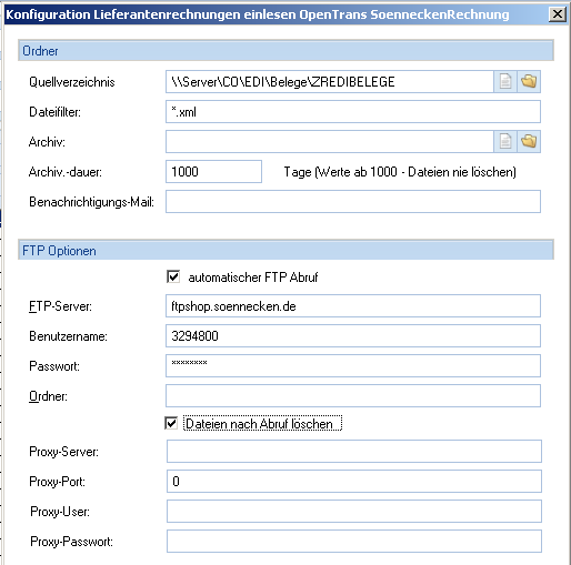 Einlesen der Rechnungen via EDI-Schnittstelle