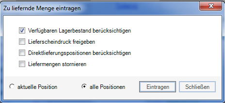 Über die Modulfunktion Liefern wird die zu liefernde Menge eingetragen. Dies erfolgt unter Berücksichtigung