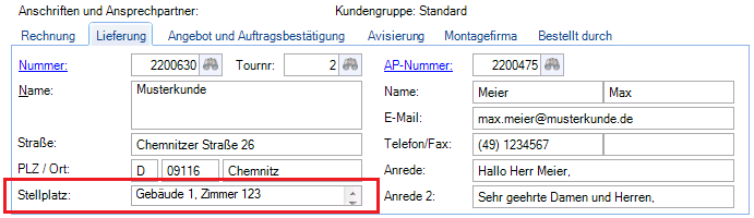 4. Übernahme aus Lieferanschrift im Auftragskopf.