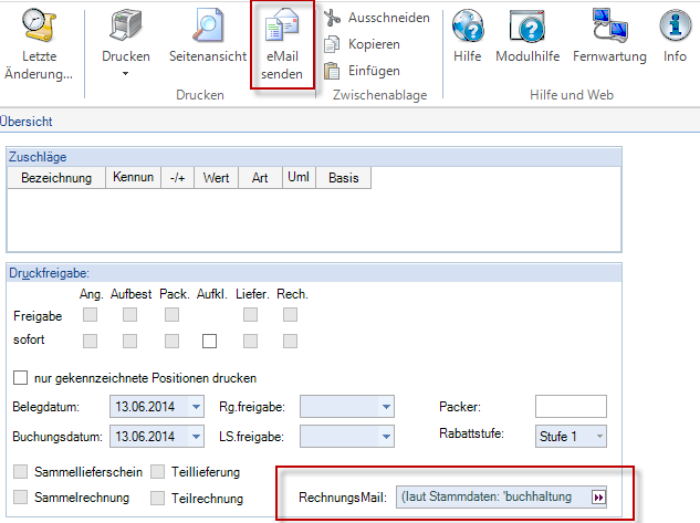 Sammelrechnung, Formulardruck und Vertragsrechnung per Email