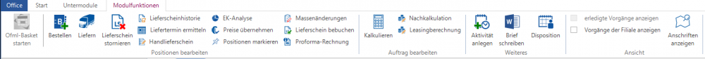 Modulfunktionen stellen Werkzeuge und Funktionen für das Vorgangsmodul bereit. Sie werden wahlweise im Menü oder am rechten Bildschirmrand angezeigt und aufgerufen.