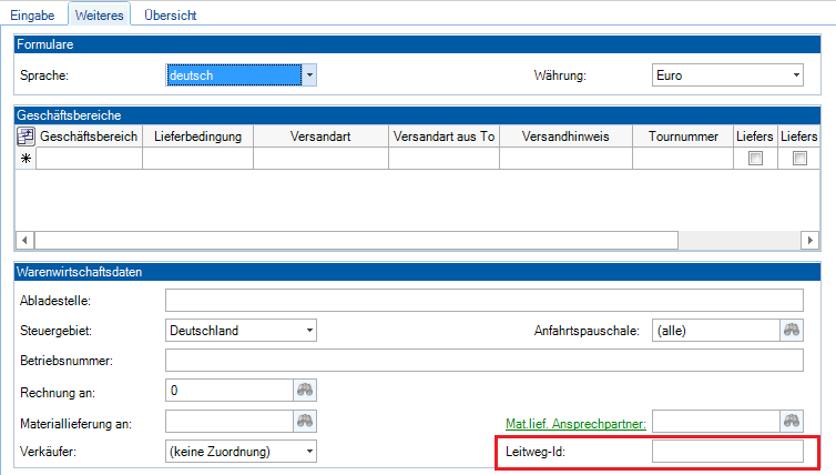 Ist die Leitweg-ID an der Anschrift leer, so wird die am Kunden hinterlegte Leitweg-ID verwendet.