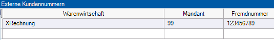 Die Leitweg ID wird unter Stammdaten im Modul Firmen im Reiter „Mitarbeiter/Weiteres“ in die Tabelle „Externe Kundennummern“ in die Spalte „Fremdnummer“ eingetragen.