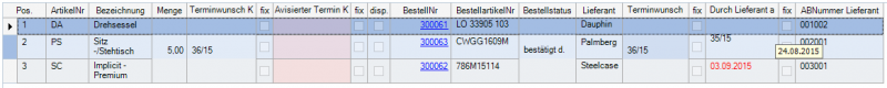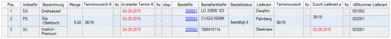 In der Vorgangsbearbeitung kann die Modulfunktion Liefertermin ermitteln genutzt werden um eine komplette Übersicht aller an den Positionen hinterlegten Terminen (Kundenwunschtermin, Lieferterminwunsch beim Lieferanten und der avisierte Termin vom Lieferanten) zu erhalten.