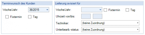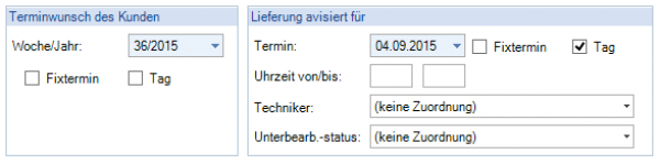 Terminwunsch des Kunden - Übergabe in Bestellung