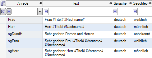 - Sprache: gemäß der Spracheinstellung am Ansprechpartner können fremdsprachige Anreden gefiltert werden