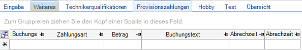 Hier hat man die Einsicht zu den Auszahlungen der Provisionsanteile eines Mitarbeiters. Für ein besseres Verständnis siehe Mitarbeitergruppen und Provisionsstaffel.