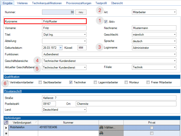 - Nur als Techniker gekennzeichnete Mitarbeiter können in Serviceaufträge als Techniker ausgewählt werden.