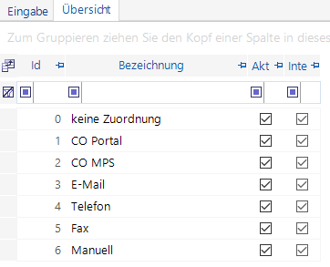 Die bereits vorhandenen Einträge werden durch Concept Office vorgegeben und können bei Bedarf erweitert werden.