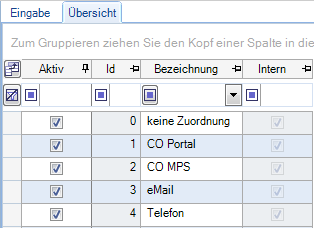 Die bereits vorhandenen Einträge werden durch Concept Office vorgegeben und können bei Bedarf erweitert werden.