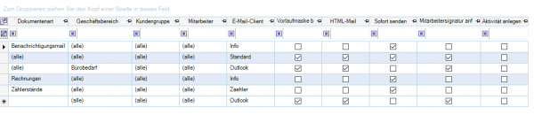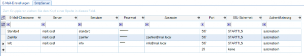 Es können für den Versand von unterschiedlichen Dokumenten per E-Mail verschiedene SMTP-Server und E-Mail Absender hinterlegt werden.